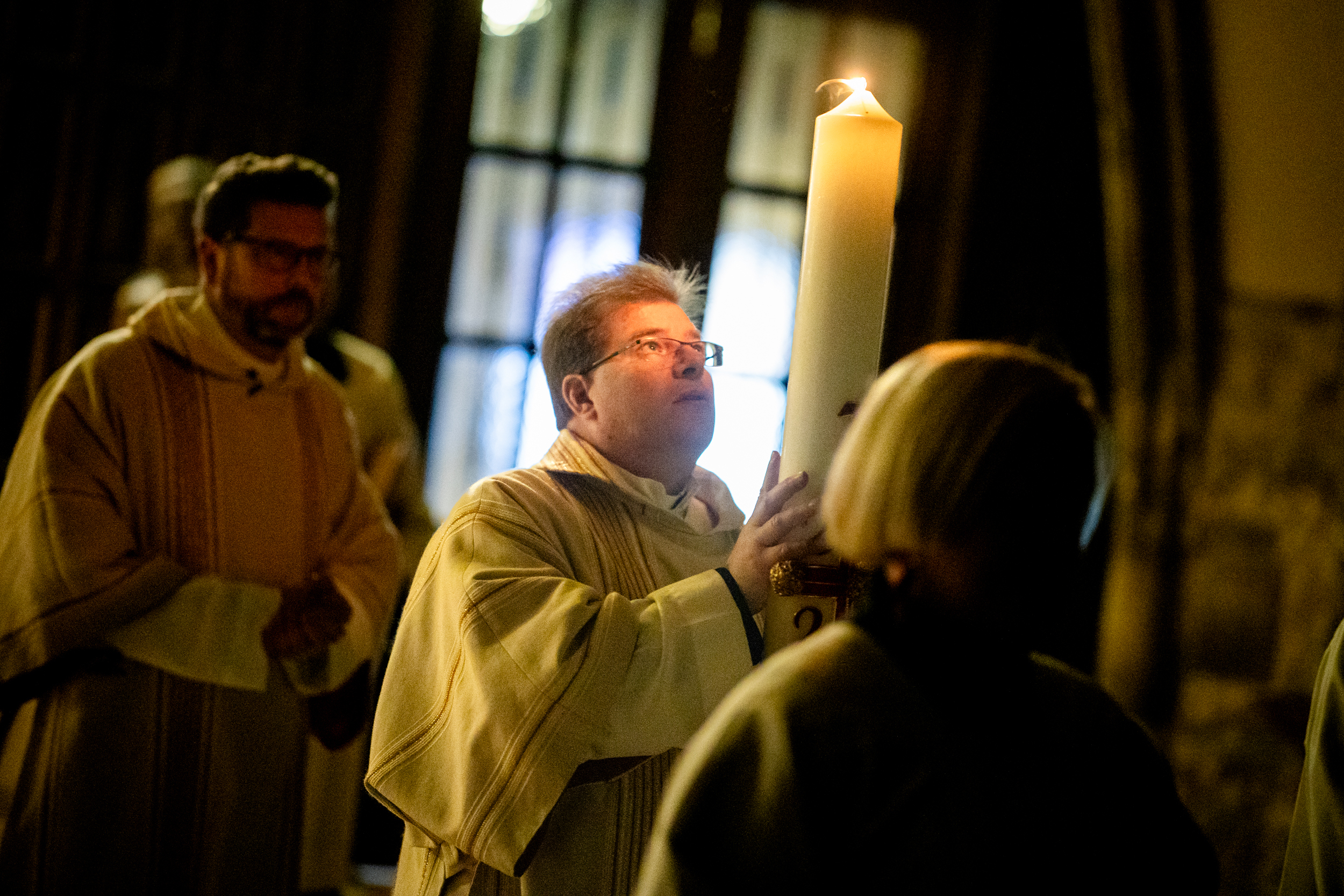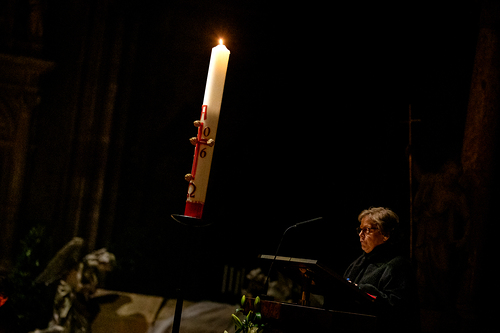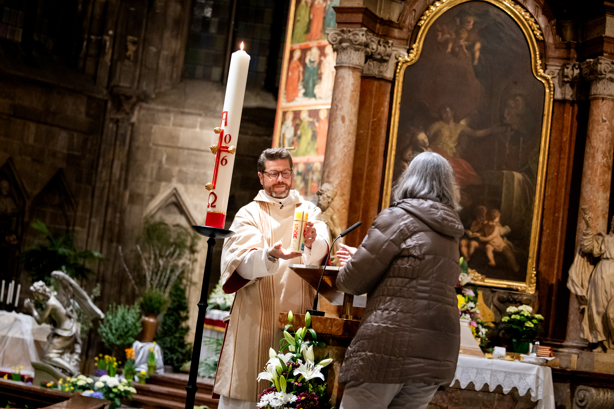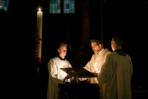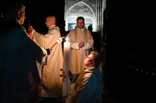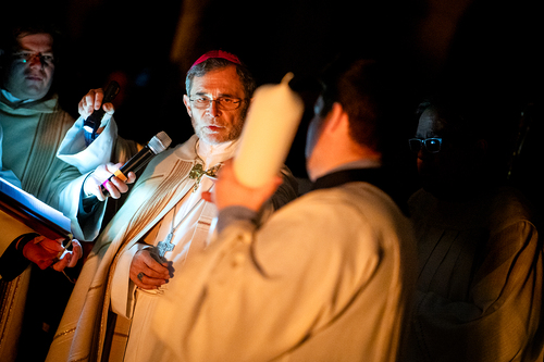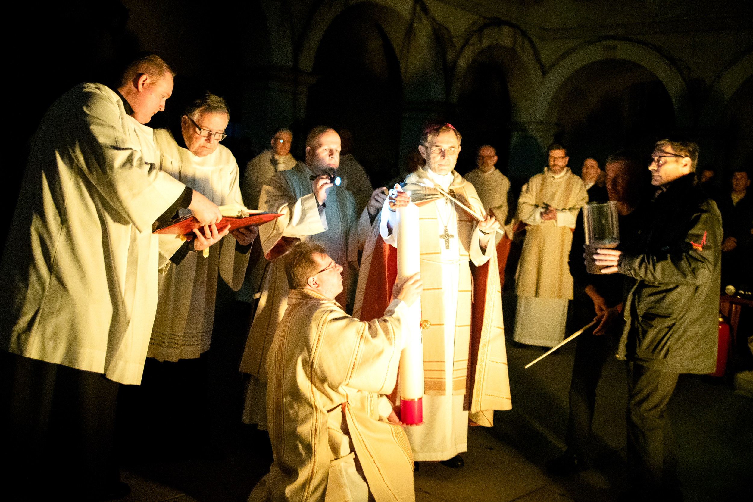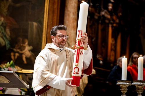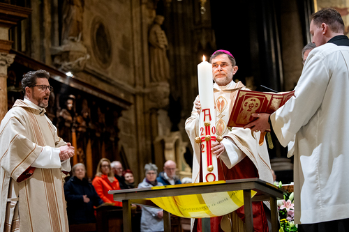 Die Osternacht ist die Feier des Lebens. Ihre Liturgie besteht aus vier Teilen – der Lichtfeier, dem Wortgottesdienst, der Tauffeier und der Eucharistiefeier. Die Lichtfeier beginnt außerhalb des Doms im Hof des Erzbischöflichen Palais. Hier wird die Osterkerze am Osterfeuer entzündet und zum Dom getragen – damit beginnt die Feier der Osternacht. Wir waren mit der Kamera dabei – unter der Leitung unseres Erzbischofs Josef Grünwidl.