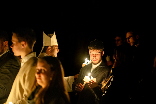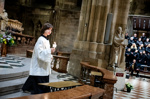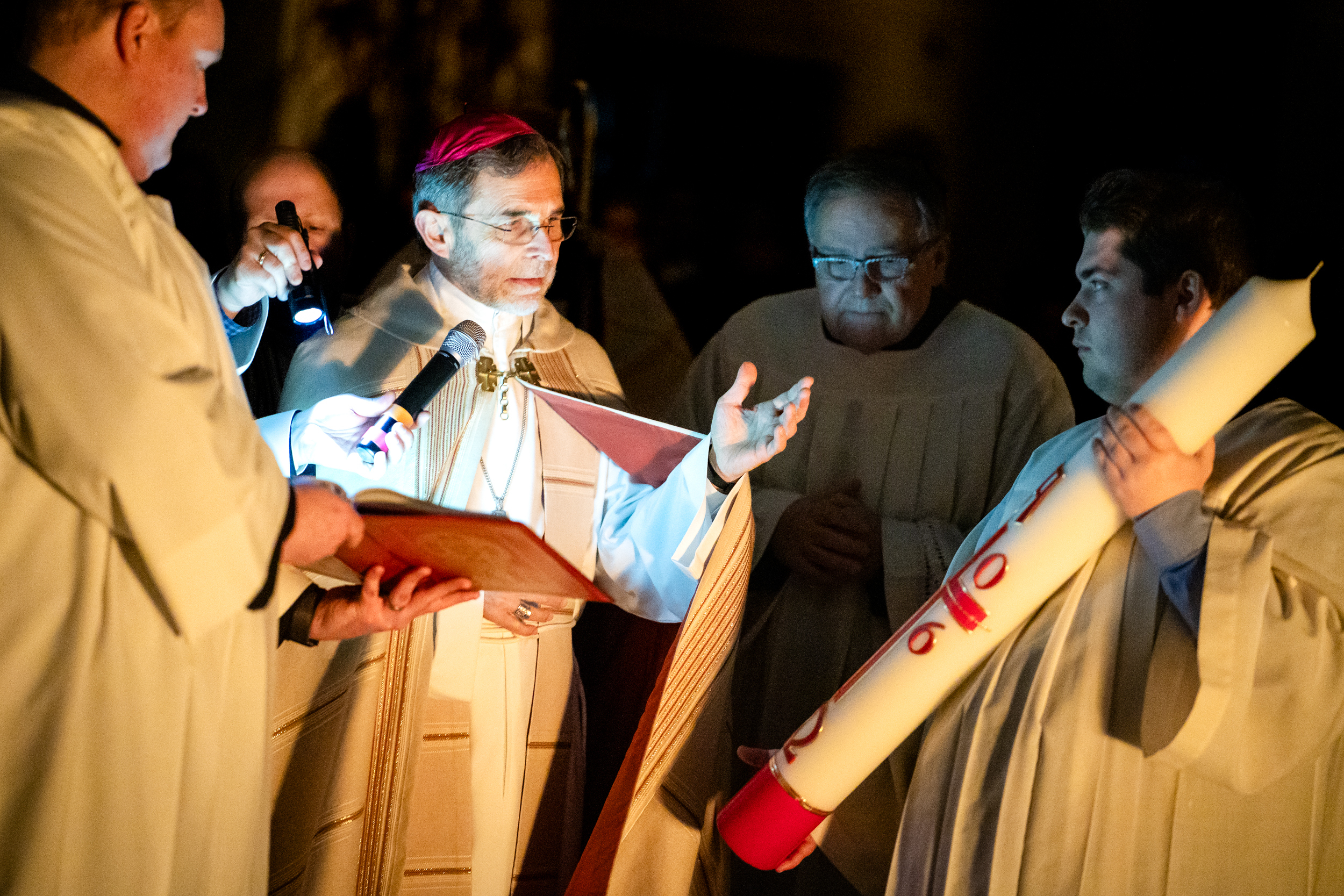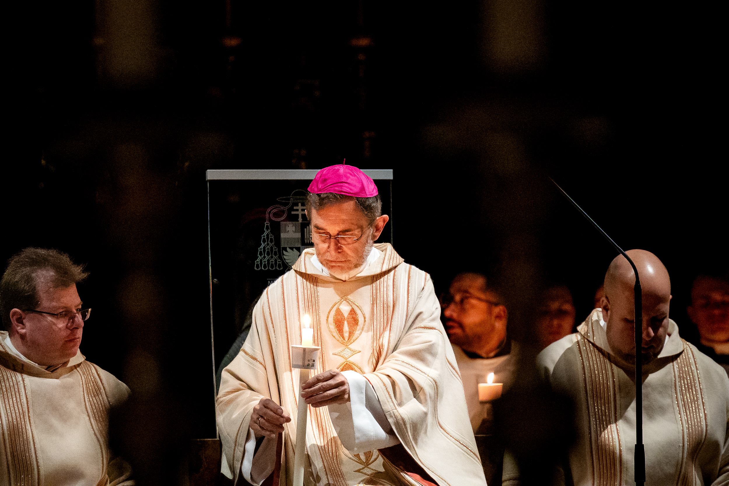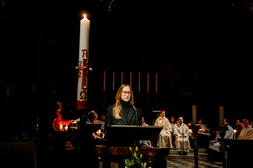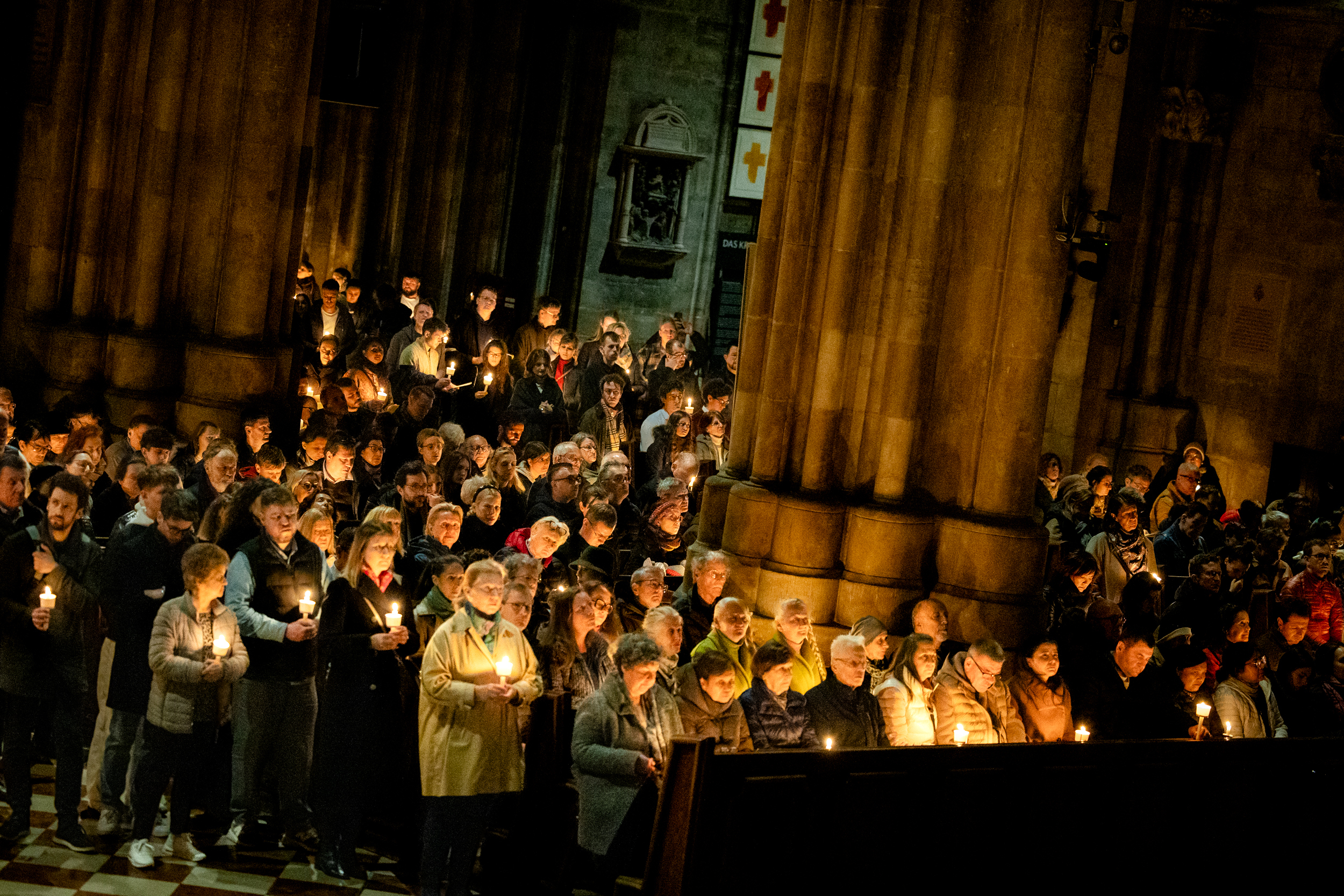 Die Osternacht ist die Feier des Lebens. Ihre Liturgie besteht aus vier Teilen – der Lichtfeier, dem Wortgottesdienst, der Tauffeier und der Eucharistiefeier. Die Lichtfeier beginnt außerhalb des Doms im Hof des Erzbischöflichen Palais. Hier wird die Osterkerze am Osterfeuer entzündet und zum Dom getragen – damit beginnt die Feier der Osternacht. Wir waren mit der Kamera dabei – unter der Leitung unseres Erzbischofs Josef Grünwidl.